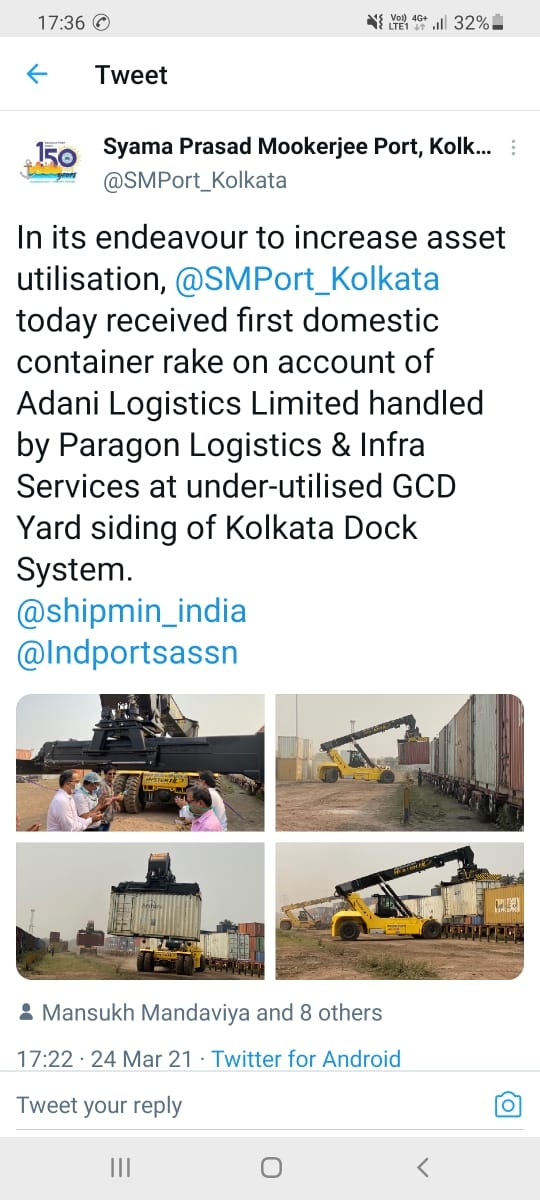 The shipping ministry and port authority are encouraging the lighterage mode of operation to increase inland water transportation. We have our own and associated barges.